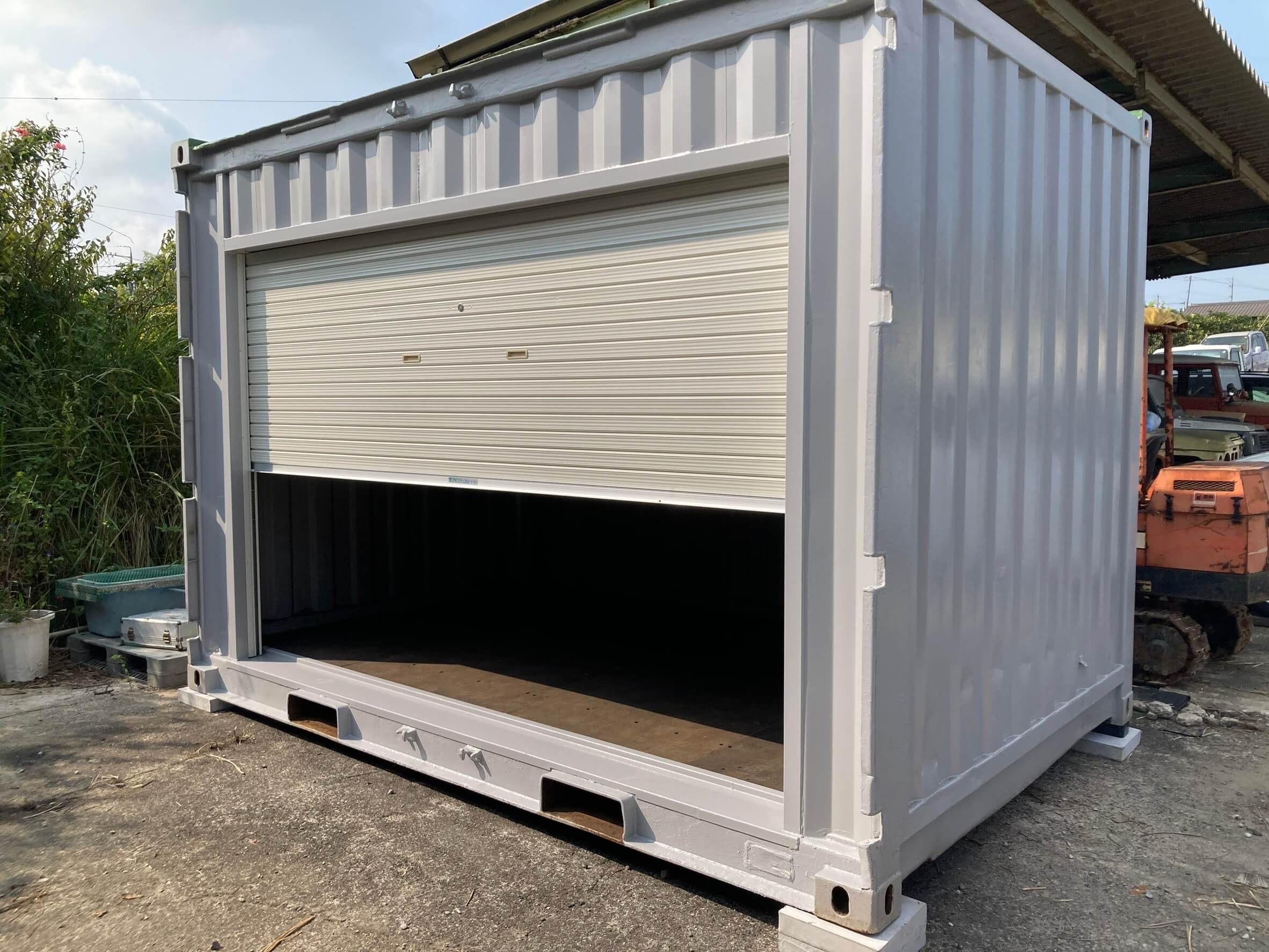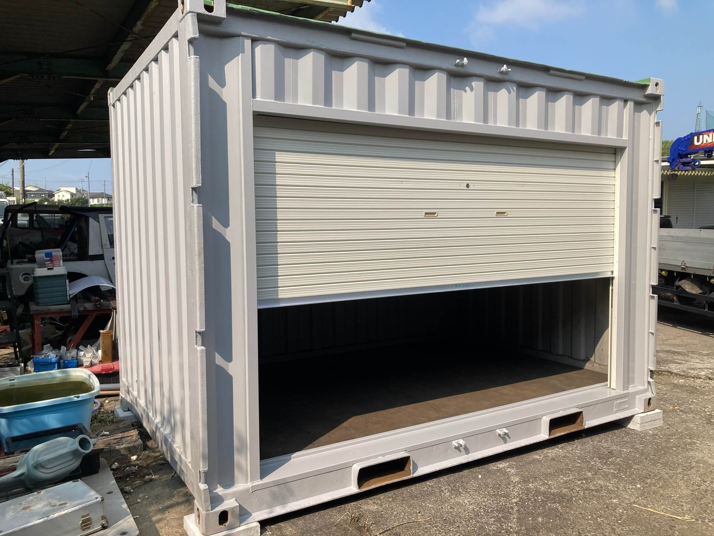 ライトグレー色に全塗装し、3mのシャッターを取り付けています。